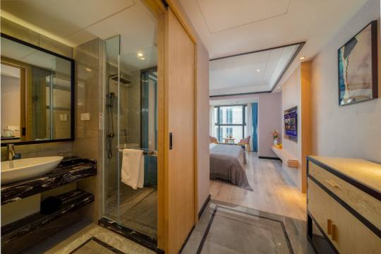 前台小邓小姐姐服务超好!我们找不到路还去外面找我们!给我们拿行李!到大厅就给我们接了姜茶!超暖心的服务!房间设施齐全!卫生间干湿分离!住着很舒服,采光也好,楼层高,晚上睡着很舒服,睡眠质量嘎嘎好!他们家离地铁站超近!附近吃的也很多!来贵阳我还会再去他们家的!