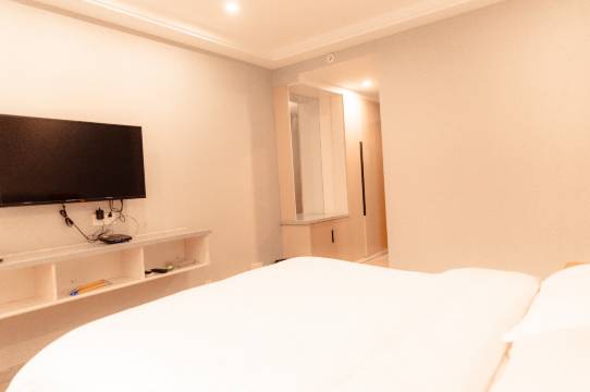 房间整体干净整洁,床品柔软亲肤,一夜睡得很安稳。采光通透,拉开窗帘就能看到楼下的绿植景观,心情格外舒畅。设施齐全且实用,空调制热快速,热水供应稳定,洗漱台干湿分离设计很贴心。卫生间无异味,备品品质不错。工作人员服务热情,入住办理高效,还主动告知周边美食位置。唯一小遗憾是隔音略一般,偶尔能听到走廊脚步声,但不影响整体体验,性价比很高,下次来还会选择!