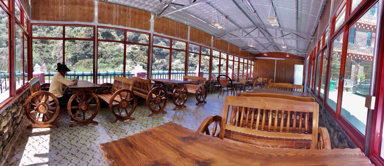 酒店就在景区大门附近,有早餐,早餐是糯米烧卖 奶香馒头,鸡蛋,粥,咸菜,晚餐可以提前订餐,需要自驾2分钟去附近营地酒店吃。前台服务小哥非常热情,主动加微信提供管家式服务,有求必应。酒店有温泉可以泡,没带泳衣也可以泡脚。总之这是景区附近20公里内条件最好的酒店,要不就得住到50公里外的巴塘县城了。