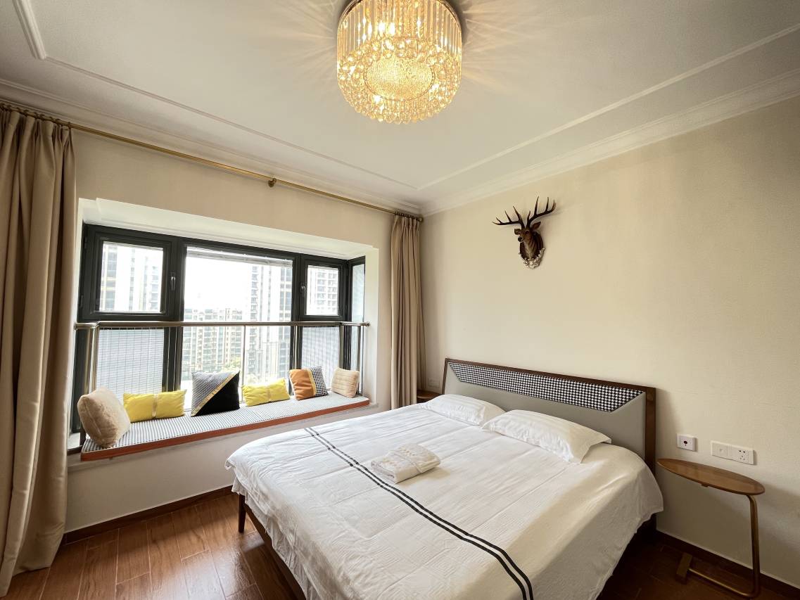 送儿子去上学,从上海过去开车二小时,租这类民宿是最实惠的,二房一厅,独立卫生间,客厅很大,设施齐备,