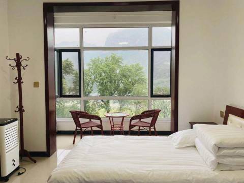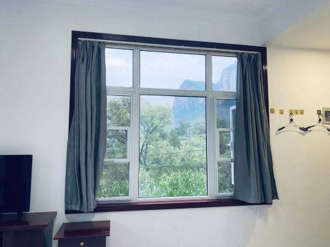 房间干净整洁,没有任何装修气味。窗户很大,正对景区大门,夜晚可以观赏景区的灯光秀。山庄离东太行景区步行十分钟左右的路程,玩累了就近休息,方便第二天玩附近景点。
