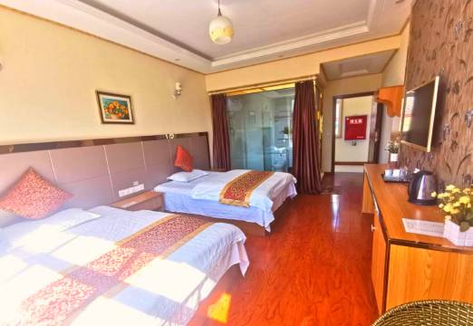 携程订的房,我们到店比较晚,小哥一直等着我们,还给我们升了房,服务特别到位,房间也很好,够大够整洁,用品齐全,窗外雪山风景很好。停车方便,位置好找。推荐啊!