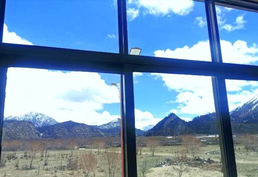 观景房,四周的雪山非常漂亮,房间很大,在楼下吃了然乌湖的鱼