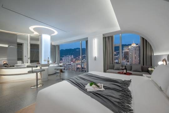 酒店面向未来的设计语言,融入山城特有的人文情怀,多层次营造轻松、休闲的人文之旅氛围。倾心为每一位宾客提供舒适而又魔幻般的纵享体验。