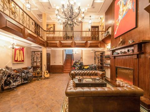 别墅大厅有红酒吧,钢琴吉他,晚上可以小酌一杯,弹琴唱歌。