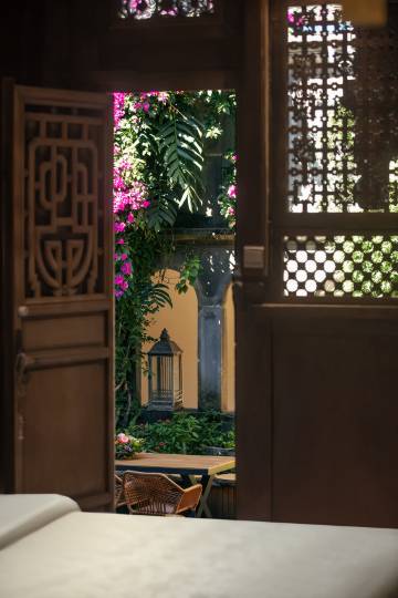 在古镇标志地野鸭湖大树丫,管家小兰帮我们拿着行李接上我们引入了古镇的青石巷弄,没一会儿,就到达民宿,推开民宿巨大的木门,一场时光与诗意的私藏相会,一座古韵与匠心共生的三进四合院豁然眼前。庭院屋顶的三角梅如紫色瀑布亭亭如盖而下,枝叶间漏下的光影在青石阶上跳跃,檐角的雕花木梁仍可辨昔日的繁复精致。民宿将传统建筑美学与现代生活需求完美平衡——客房内原木梁与暖色灯光相映,南洋家具与素色床品传递着素雅之美,让古朴空间浸润着舒适且有品质的温度。最妙的是倚窗可见古镇错落的屋顶与远山轮廓,加上院内慵懒的小猫,可爱聪明的鹦鹉喜乐光影婆娑间竟分不清是画中人还是画外人。