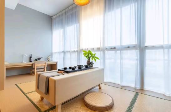 房间空间很大,有个小茶室很适合拍照打卡,很出片,来这里考试的,离考场非常近,出行很方便,离万达近晚上叫外卖送的好快!很棒