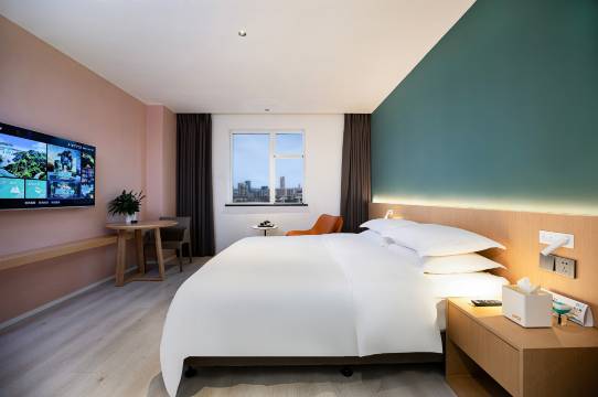 来旺达轻居酒店|住进新乡中心,逛胖东来+逛公园,轻松即达 位置极佳,旅行无需奔波 步行3分钟即达 胖东来大胖,网红超市、美食打卡,下楼即享 步行2分钟至 新乡人民公园北门,晨跑吸氧、午后漫步,自由切换 周边公交便利,轻松直达火车站、市中心,游玩省时又省心 设计酒店,不止于睡,更是一种体验 沉浸式公区设计:圆弧书吧、音乐萦绕、融合式大堂,随处皆是可驻足、可拍照的轻奢空间 开放式移动办公餐厅:提供轻食餐饮,支持会客、办公、社交,满足差旅与休闲双重需求 静享好眠客房:采用高星级定制乳胶床垫+柔肤床品,搭配活力色调与静音系统,打造“天鹅拥抱般”深睡眠 智能便捷配套:高速Wi-Fi、多功能充电,细节处处体贴 交通提示 距新乡火车站车程10分钟, 距新乡东站车程25分钟。 为什么选择我们? “上午逛胖东来,中午回房休息,下午公园散步——这才是旅行的正确打开方式。” “设计感十足,拍照出片,床品舒服到不想起床。” 不仅是酒店,更是你在新乡的“城市客厅+舒适睡舱”。 温馨提示 因临近胖东来热门商圈,建议提前预订,确保心仪房型 提供行李寄存、旅游咨询、本地攻略指引等服务 来旺达轻居酒店——让旅程兼顾便利、美感与放松,在新乡的核心位置,为你提供一个“可逛可躺可办公”的灵动空间。 欢迎预订,开启一段不将就的出行体验。