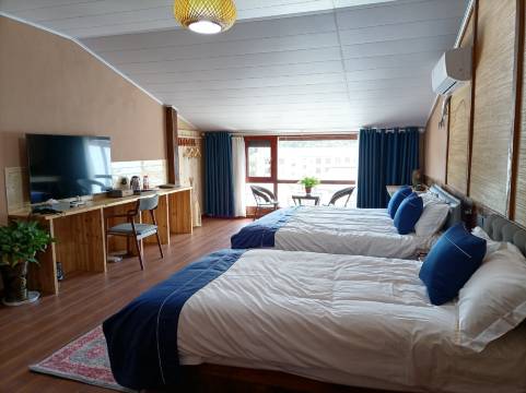 环境非常好,是在村里一个民宿集合点,办完入住就在楼下散步了,空气很清新。可能是靠山脚,蚊子会多一点,注意关好门窗。