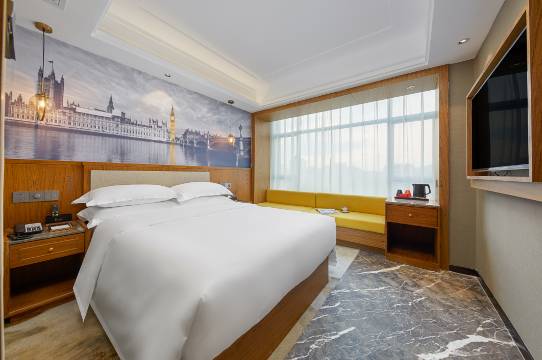 酒店装修精美,酒店住置好,离城、火车站近,在房间能看到江景,前台服务人员态度热情,酒店干净,床品新,配套全,停车方便,推荐。