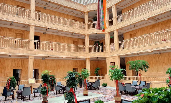房间不错,带老人出行,前台特意给安排到一楼。酒店装修风格藏式木制房!非常不错!房间也很安静,关键这个季节房间暖气很好不冷,停车也方便!