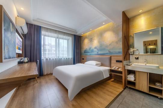 前台小姐姐很热情,保洁阿姨也非常热情。酒店卫生干净,一次性拖鞋(质量超好)、一次性洗脸巾、一次性浴巾,一次性马桶垫处处都考虑到了。