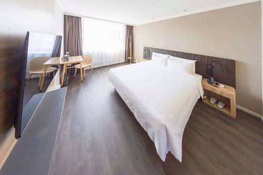 领孩子来看雾凇,酒店位置很好,到江边,天主教堂都很近,楼下就是商业区,乌拉火锅烧烤等一应俱全,房间卫生,小度智能语音操控,娃儿很喜欢,值得一提的是前台服务很周到,无论是第一天拿自己手机给娃儿投屏看电视的小姐姐,还是离店时主动提醒带水和小吃在路上吃的美女 ,让人感到很温暖。对了,房间很热,睡觉都不用盖被。