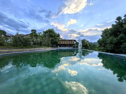 酒店位置较高,户外草坪视野辽阔,早上空气清新,可观远山,亦可俯瞰山下景色,草坪上有一颗山楂树,园区内有鸵鸟孔雀大白兔,秋千图书馆陈列馆,适合亲子家庭游。酒店前台积极帮忙协调房间,解决问题,效率高。房间内设施新,干净,隔音效果不错。早餐可口,服务员认真负责,随时关注食材及客人需求。总体感觉不错,有文艺气息,有历史感,也有趣味性,值得小住。