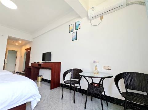 有个小电梯,好过爬楼梯,门口可以停几辆车,去沙滩可以步行一百多米吧,不过我们去的时候涨潮,全部漫过沙滩,很多垃圾,海水也很脏很臭,我们是开车沿着沙滩右边的路一直开到很远的地方玩的。可以直接在路边停车走下沙滩,完全可以不住在靠海边的民宿,因为环境也就那样,周边夜宵摊餐馆很多的,看个人选择。这个酒店房间挺宽敞的,厕所是蹲厕,很大,没有干湿分离,这看个人喜欢,就是普通民宿的厕所风格,有晾衣架这个挺方便的,有一个小圆桌和两把椅子,晚上吃个夜宵很方便。空调有点吵,厕所外还有全身镜,方便化妆我喜欢,我们这个房型窗外是烂尾楼,想要看风景的别订。
