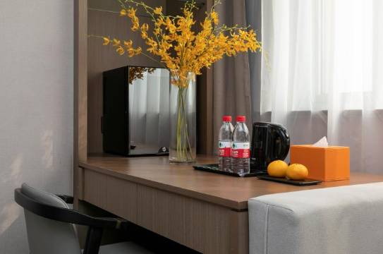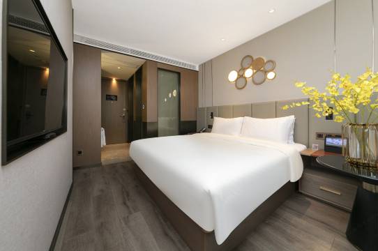 冲着携程评分来的,酒店很干净细节完全不输五星,性价比很高。地板有点老但硬件设施都很好很新,卫生间淋浴房角落都挺干净的,本人有点小洁癖很满意,以后到这出差还会住。地铁口也很近,停车场位置也宽敞。