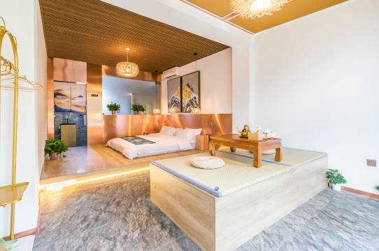 双人间还有个大榻榻米,还挺宽敞,听说这用的水都是井水,水碱比较少,这儿还有鸳鸯锅的铜锅涮锅不错,要是烧烤,管家也能做好炭火服务,还挺省事的,他们家还跟一个吃饭的地儿有联系,要是不想自己做饭,还能点饭吃,还挺方便的。就是山里马陆比较多,有点吓人。