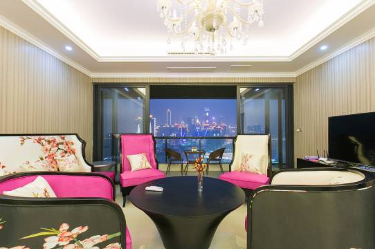 【添加房东微信可向房东索要全景VR,身临其境全角度观看两江交汇。】馋宝宝民宿是江景房,此处长江与嘉陵江两江交汇,嘉陵江沙少水清,长江沙多水浊。嘉陵江水绿,扬至江水黄,两水相交朝天门,撕咬翻卷,流急涡旋,似如野马奔腾,双龙争珠。重庆江景房千千万,楼下是南滨路风景区,是全重庆难得可以休闲散步,骑车的地方。因重庆的山城的特殊地形,几乎所有重庆举办的跑步和自行车比赛都在南滨路进行。 重庆江景房千千万,唯此江景无可负……公寓位于超高层,视线非常非常好,江景夜景超赞。带江景阳台的客厅,俯瞰朝天门码头、南滨路、东水门大桥和朝天门大桥,远眺重庆码头全景,山城婀娜一览无余,看那渡轮来回漫步,游轮霓虹缤纷;180度落地玻璃窗主卧,除可俯瞰南滨路、东水门大桥和朝天门大桥。看,眼前就是重庆的名片朝天门码头和渝中半岛建筑群,夜里就是在重庆夜景中酣睡;大落地窗的卧室可以看到重庆大剧院,晚上重庆大剧院的灯光是烟花绽放;任何一个房间都可看江景、夜景,选对了吧!房间使用密码锁,方便安全。 小区的楼下就是长江轮渡口,可直接乘坐渡轮到朝天门码头。楼下公交车乘坐6站,龙门浩月下车,体验下出境在各种节目的明星——长江索道。小区有停车场,自驾可入停,24小时20元。虽处南滨路景区、码头,但夜晚的南滨路是个安静的美男子,让你静心入眠。小区有门禁系统、保安24小时值班、星级物管。小区一楼即为公安局,治安有保证。小区有篮球场、羽毛球场、兵乓球台。我们免费提供球和球具供亲享受运动的乐趣。房间同时免费提供扑克、骰子、象棋、国际象棋、围棋。 无论亲几点到达,我都会等你哦。