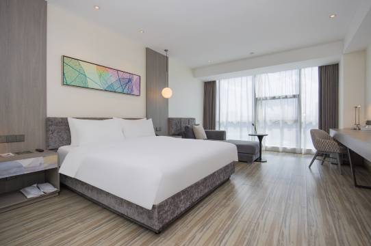 酒店拥有一百余间的智能客房,法式设计尽显浪漫及典雅;配备丰富中西式早餐的自助餐厅, 还设有大堂吧、健身房等设施,满足商旅宾客的各类需求。