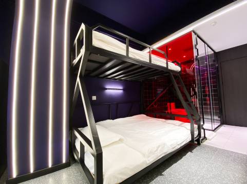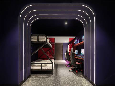 酒店服务优质,环境舒适,装修主要以游戏为主题的带朋克科幻风的装修风格,每个房间都配备有电竞职业赛事级别的专业设备,各类端游手游游戏特权,大厅还设有线下观战区。房间内设有零食自助墙和冰箱,配备有一线品牌的洗漱用品,独立空调、无线WIFI、烟灰缸、抽风等基础设施。房间空间大,隔音效果超好,私密性超强。洗漱和卫生间分开,有的房间还配有自动麻将桌,致力于让电竞爱好者以及其他住客可以住的舒服住的快乐。