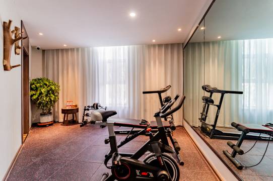 额外还给配备了健身区(有跑步机、健身凳),对喜欢运动的住客很友好,这点在同档酒店里算比较贴心的配置了。