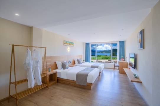 位于丽江泸沽湖风景区吕家湾核心位置, 摩梭传统建造的木结构古典建筑与室内当代设计反差搭配得恰到好处,为您褪去旅途中的疲乏,舒展身心,营造出暂避俗世的氛围,为您提供一个宁静舒适的体验。客栈临湖而建,正对格姆女神山,地理位置优越,距离泸沽湖客运站约9公里,驾车10分钟左右。客栈至吕家湾码头步行约5分钟、蒗放码头步行约10分钟、大洛水码头驾车约10分钟、走婚桥驾车约20分钟。周边游玩方便,餐饮种类多,特色饮食聚集。融合民族文化和复古风情的设计,贯穿了中庭和早餐厅,客房配有地暖,房内宽敞豪华,湖景视野极其开阔。室内布置温馨舒适,房间设施齐全,空间感十足,部分房型配备舒适浴缸,愿您尽享泸沽湖旖旎风光,深处杂世却超然享乐。客栈24小时开放的前台服务让您居住无忧,客栈所有便捷的设施配套旨在为您营造宾至如归的住宿体验。白日赏湖光山色,夜看繁星点点,听流水潺潺,看云卷云舒,各种美好,怡然自知,让自由和宁静流淌在旅途,期待您的到来!
