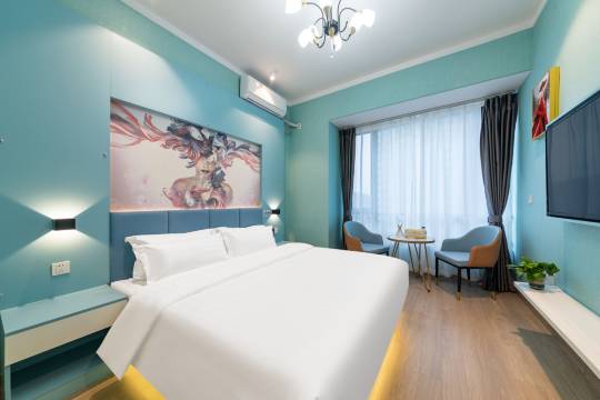 房间配置坚果G9高清投影仪加100寸巨幕,私享影院享受!主打高空市景房,可见南山,部分带榻榻米和吧台,可以非常惬意的赏景!酒店对客房的装饰十分考究,每间设施齐全的客房都配备有空调。有饮水需求的旅客,酒店还为您提供了瓶装水。除此之外,配备有拖鞋、24小时热水和吹风机的浴室是您消除一天疲劳的好地方。
