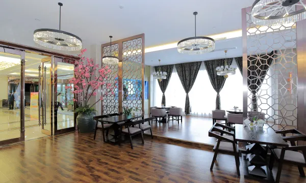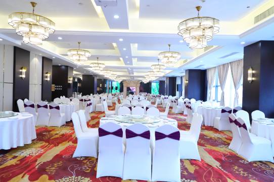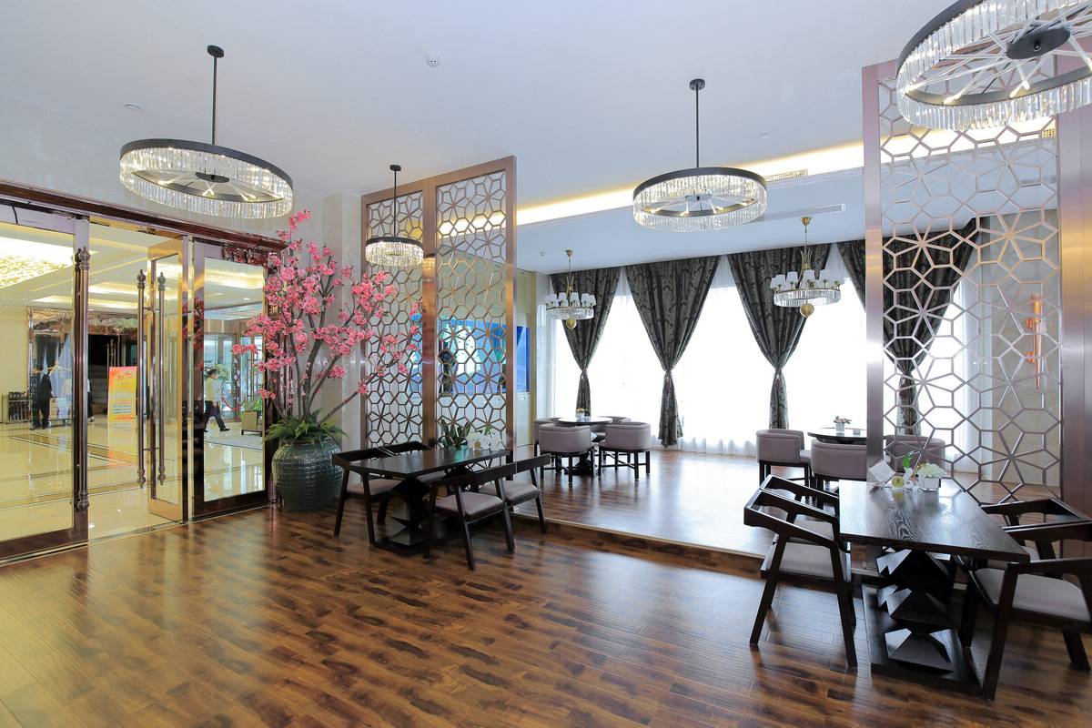 饭店设有可以同时容纳400人就餐的大型中餐厅1个及10间特色包房,其中有供20至40人共同用餐的豪华连体商务宴请包房,可承接大中型商务会议和各类大型家宴。