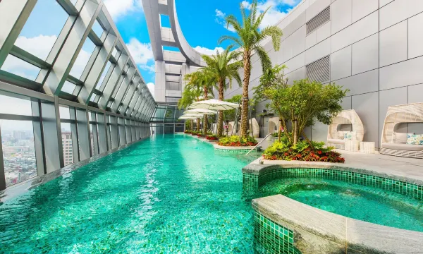 酒店位置很好,近捷运站、附近有夜市、商场、食店林立、酒店设施有泳池、健身房