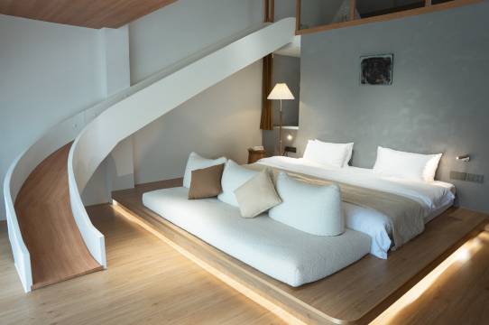 房间干净卫生舒适。带滑滑梯的房间简直就是小孩子的最爱,可以一直滑一直滑。清晨坐在露台喝一杯咖啡☕️简直不要太完美。老板应该也是一位很有品味的老板,设计处处都透露了用心。已经推荐给了很多朋友。下次度假还要来!