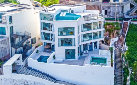 这是一家酝酿多年才完成的民宿,从拆掉老房子到设计到基建到内室设计,老板都亲力亲为。因为在交通不便的岛上,各种成本都比大陆高很多,所以这边的民宿价格普遍比较高。但本店为客人提供了戴森吹风机,马歇尔音响等各类高标准配置,让客人觉得物超所值。民宿个性,好看,适合打卡,在一楼建了摩洛哥风格的小泳池,一楼大厅咖啡厅,让客人无论拍照还是小憩小饮,都有地方去。