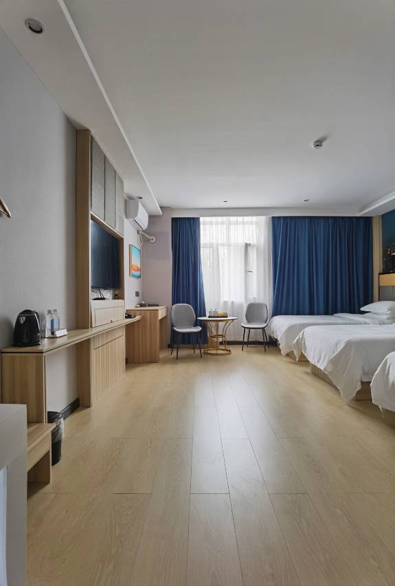 酒店安静,房间整洁,洁白的窗纱随风飘摇,双层窗帘,很遮光,公用区wifi免费,停车场