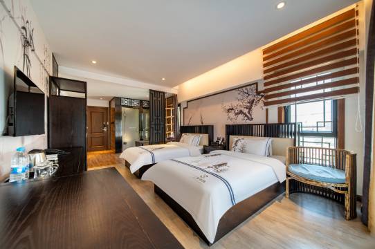 这里每间客房的设计,传承了中华传统建筑的精髓,保持着传统建筑融古雅、简洁、雅致于一体的独特艺术风格。以大自然为皈依,含隐蓄秀,奥僻典雅。