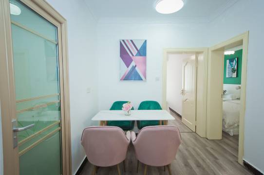 位置:(唯一的缺点)位于闹市区的一栋居民楼中,虽然周边的环境很热闹,但是民宿所在的地方比较偏,在楼层中还要进一个小铁门。我们是晚上到的,楼梯那儿有灯但楼层中间没有,上楼了之后黢黑的看到红色铁门根本不敢进啊啊啊(为什么楼层里还有门),差点儿就打算立马换民宿了。如果全是女生一起出行,非常不建议。