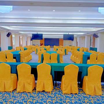 酒店开业时间2005年04月,新近装修时间2014年下半年,局部装修,,客房总数159间,可容纳350人的入住,有大小会议室7个,可同时接待600人的会议、就餐、住宿等