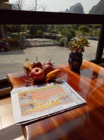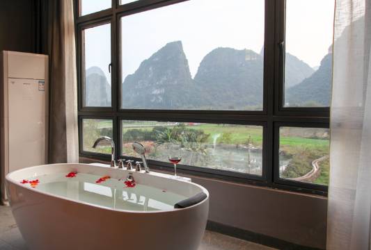 位置就在十里画廊里风景很好哦,出门就是阳朔最火的遇龙河水厄底码头,坐竹筏特别方便,有免费停车位,前台小姐姐很热情的介绍好玩的景点,还可以买优惠票哦,推荐推荐……