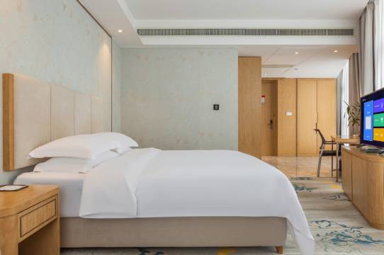 酒店周围青山绿水,空气非常好。前台接待服务热情,推荐我有空到边上湿地公园去散散步;房间宽敞,设施齐全,卫生干净整洁,床垫软硬适中睡觉很舒服,整体体验很满意