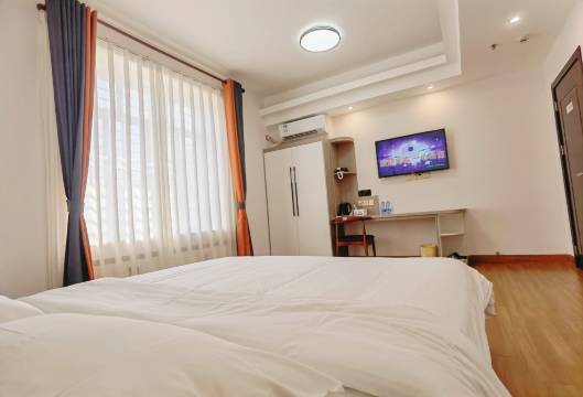 订的豪华大床房,在这续住了5天4晚,感觉就像自己家里住一样,非常舒适。新装修现代简约风,电视,衣柜,桌子,空调都具备齐全。wifi也很流畅,卫生方面打扫得很干净,一点也不输给品牌酒店的环境卫生,屋前屋后都有停车位,老板人和清洁阿姨都很和善。极力推荐入住