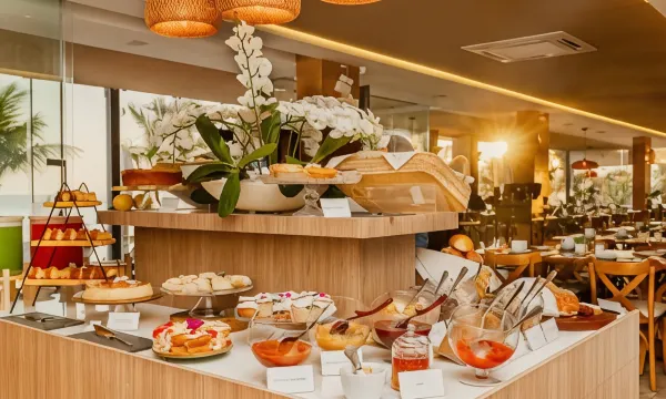 您可以到酒店的海滨餐厅简单吃一点;这里还设有酒吧/酒廊,可欣赏到游泳池景色。也可以待在房间里,享受部分时段客房送餐服务。在忙碌的一天后,不妨去池畔酒吧轻松一下。每天 07:00 至 10:00 提供收费的全套早餐。