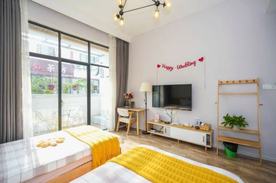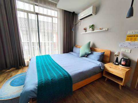 第一次带着家人住民宿,因为当天到店有点早,订的那个房间的客人还没有退房,无法入住,老板就给我们免费升级了另外一个房间,房间很大,整洁漂亮,干净,没有异味,房间里还准备了各种生活用品(一次性面巾,拖鞋,马桶套,护手霜等等),因为有小孩,我老婆还特别检查了床上用品,确认是新换的都很满意,老板还给我们多加了一床被子,还帮我们调好了空调温度,还特地烧了一瓶开水给我们说是给小孩冲奶用,还介绍了周边实惠的中餐和小吃,告诉我们店里有冰箱,微波炉,洗衣机都是免费使用的。性价比也很高,超级推荐,离川农很近的。