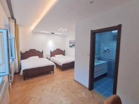 房间很大很宽敞明亮,虽然在街边但现在是淡季也不吵,木地板和窗都很好看,房间暖气很暖和,床软但是睡上去不会塌,卫生间也很大,早上有早餐券,在街对面的营养粥铺吃,一张券10元,也挺好吃挺划算的,基本都能吃饱
