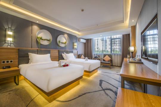 酒店有机场接站,这点很人性化,一到酒店,前台帅哥帮忙拿行李,登记房间,让我们抓紧时间去吃午餐,房间干净,早餐中餐都很丰富晚上还有米线馄饨面条,用餐环境也很好,服务人员都很有礼貌。退房时小姑娘一直陪着我们在外面等,直到我们上车才进去。房间有泡脚桶,配备中成药以及一次性袋子,干净。