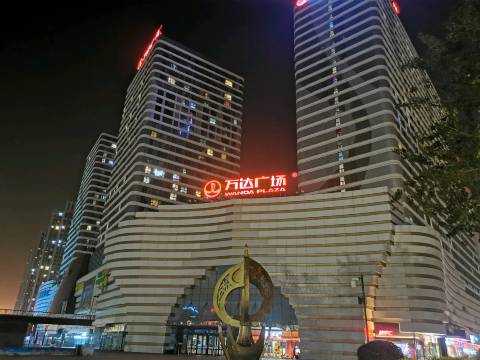 在万达楼上,很方便,楼下吃的啥都有,外卖也方便,床很舒服,玩累了睡觉很解乏,机器也不错,来了很多次都没卡过
