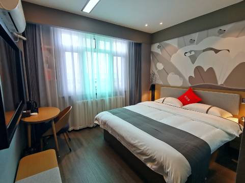 在城镇主干道上,应该是周边比较好的连锁酒店了,房间设施齐全,床品也很舒服。楼下有超意兴,周边街道上店铺很多,吃饭啥的都很方便,好评。