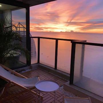 很满意的一次入住,房间干净整洁,阳台和浴缸就能看到大海,最主要的是楼下的海上栈道那里看日落晚霞真的太棒了,推荐推荐