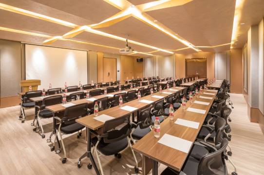 【酒店特色】房间配备【小冰箱】和【智能客控】,24小时免费【洗衣房】【健身房】【停车场】;有【会议室】。