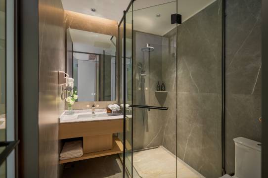 刚好遇上下雪天,这趟旅行最满意的就是选对了酒店!房间采光超棒,拉开窗帘就能看到园林,白茫茫的一遍,卫生细节做得很到位,卫生间没有一点异味,毛巾浴巾都是消过毒的。酒店自带的停车场免费,对于自驾的我们来说太友好了。周边便利店、餐馆都很多,生活便利度满分。下次还会来住!