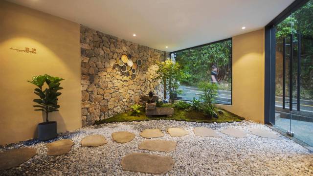 客栈以当地原生材料为主材,以质朴代替奢华。原木、藤编、亚麻,和未经打磨的天然条石,几乎贴近自然的融入室内外环境,侘寂美学的山屿悦,似乎在诉说:朴拙素雅,也是一种美。