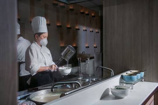 房间隔音很好 一觉睡到自然醒 到白尼餐厅用餐 自助式早餐 品类很多 我选择的是特色米线 非常好吃 西式的也有 想吃什么拿什么😋