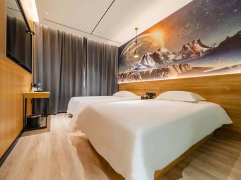 地址:中华大街北二环东南角(石家庄市) 设计风格:轻奢时尚简约 + 智能云主题 + 电影文化元素 特色设施: 智能语音客房控制 高清投影设备 + 正版影片库(支持手机投屏) 自助洗衣房(洗衣机/烘干机/挂烫机) 休闲茶座区 交通与位置优势 便捷交通:公交直达:石家庄北站、石家庄站、石家庄高铁站 快速路网:西柏坡高速直接对接 周边距离: 大型超市:新百广场、万象城、泰勒中,等核心商圈:10分钟车程 水上公园:步行可达。 附近景区推荐 萌宠奇缘:亲子互动好去处 赵佗公园(北行):历史文化漫步 水上公园(南行):休闲娱乐/近酒店 服务与体验 贴心服务:家人式关怀,满足商务/旅游需求 住宿环境:温馨恬静,紧邻商圈与景点,出行无忧 适合人群:商务出行、家庭旅游、年轻群体(智能体验爱好者)